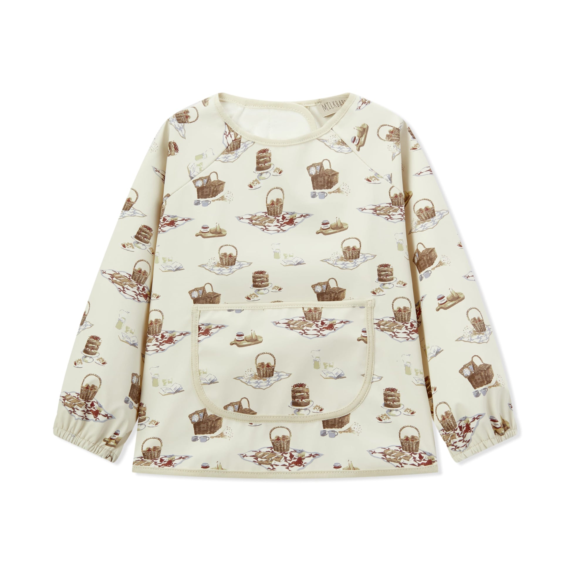 Keep mealtime messes at bay with our Long Sleeve Pocket Bib in the Picnic print. Designed for practicality and style, this bib features long sleeves for full coverage and a convenient pocket to catch crumbs and spills. Crafted from soft and durable materials, it's easy to clean and comfortable for your little one to wear.
